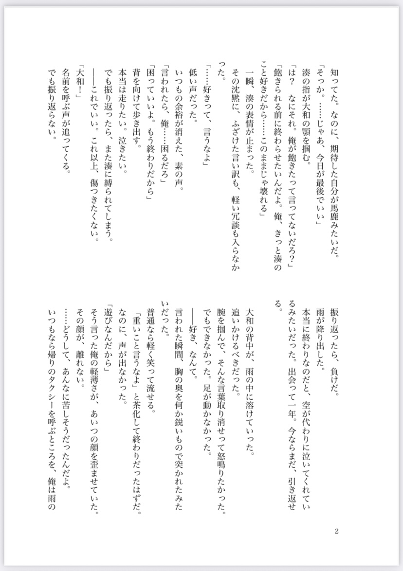 本当に終わりなのだと、空が代わりに泣いてくれているみたいだった。出会って一年。今ならまだ、引き返せる。