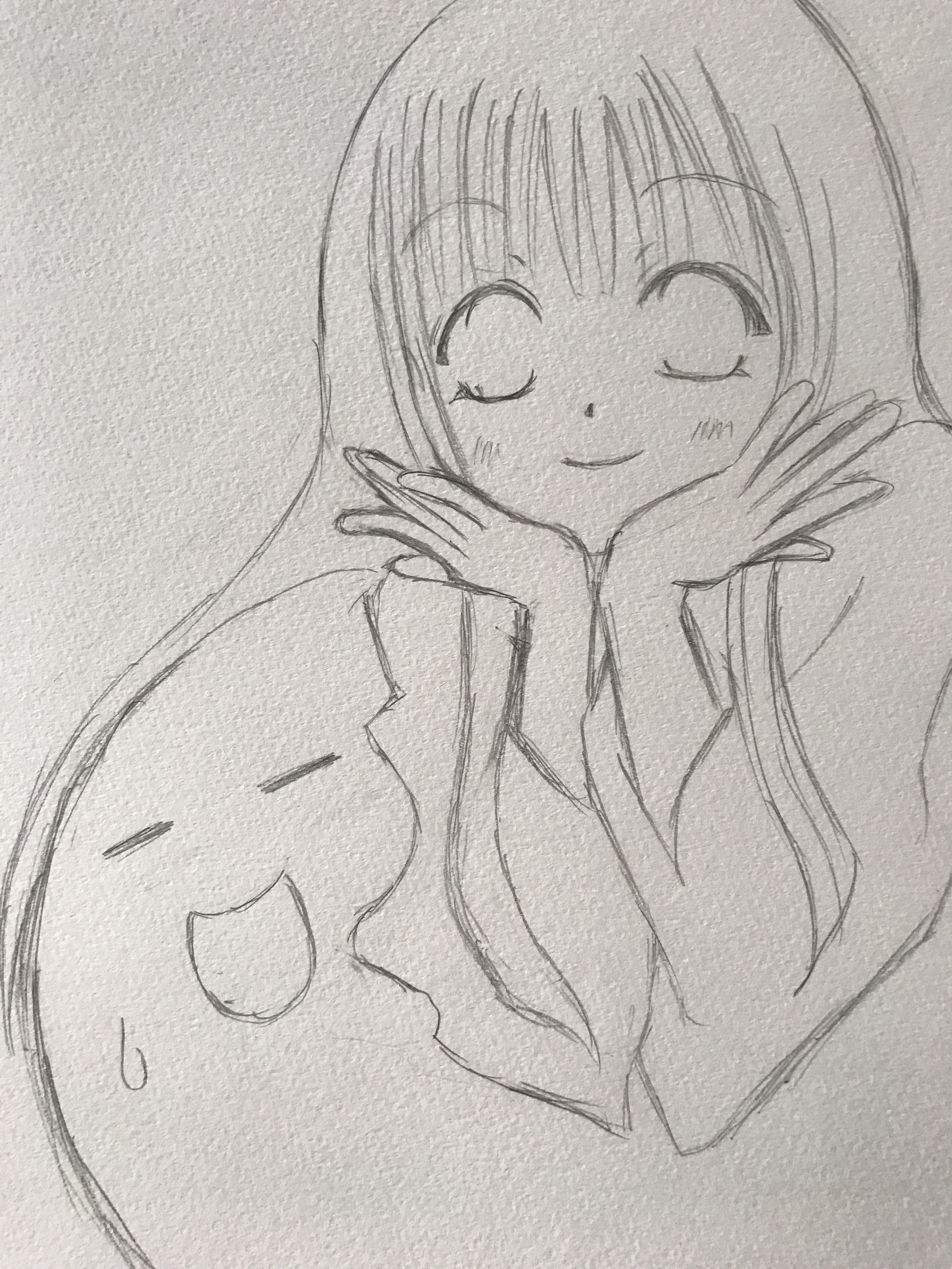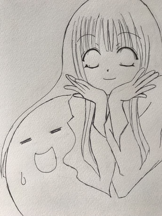 その後に、髪の線やら色に強弱、背景を描いて完成(*´ω`*)