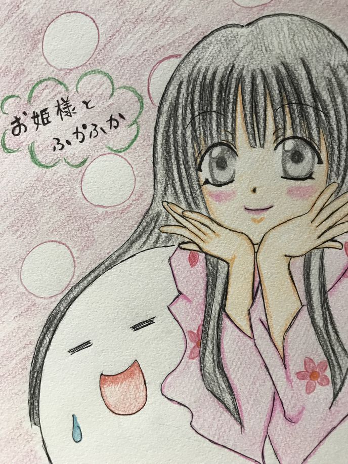 こちらは「夢の言葉シリーズ」の専属絵師様の作品より、お姫様と謎の生物ふかふかを描かせて頂きました(*・ω・)ノ