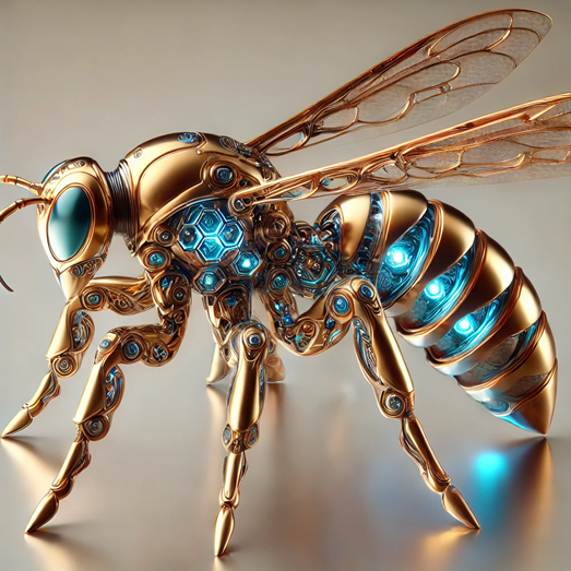 基本的には地球の蜂に似るが、グラフェンとキチン質、貴金属が層状に融合した外骨格によって強化され、外観上金属光沢を持つ。