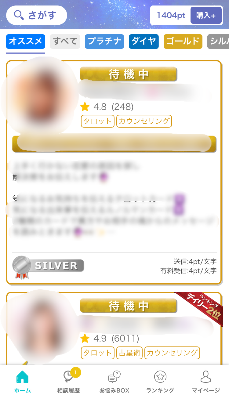 他にも条件クリアでポイントを無料でゲットできるので、最初のうちは無課金でも占ってもらえます。