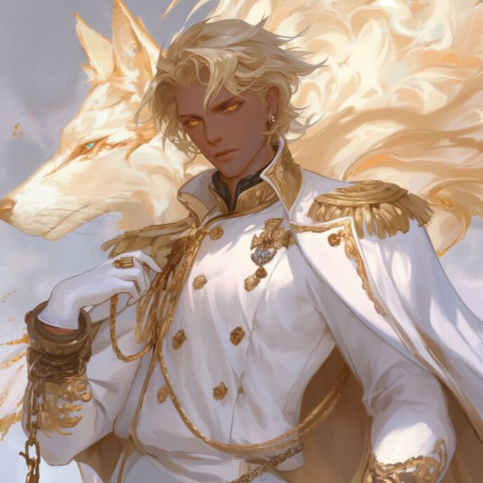 吊り長の金色の瞳をし、褐色肌はシックスパックに割れてるほど、肉体は筋肉質