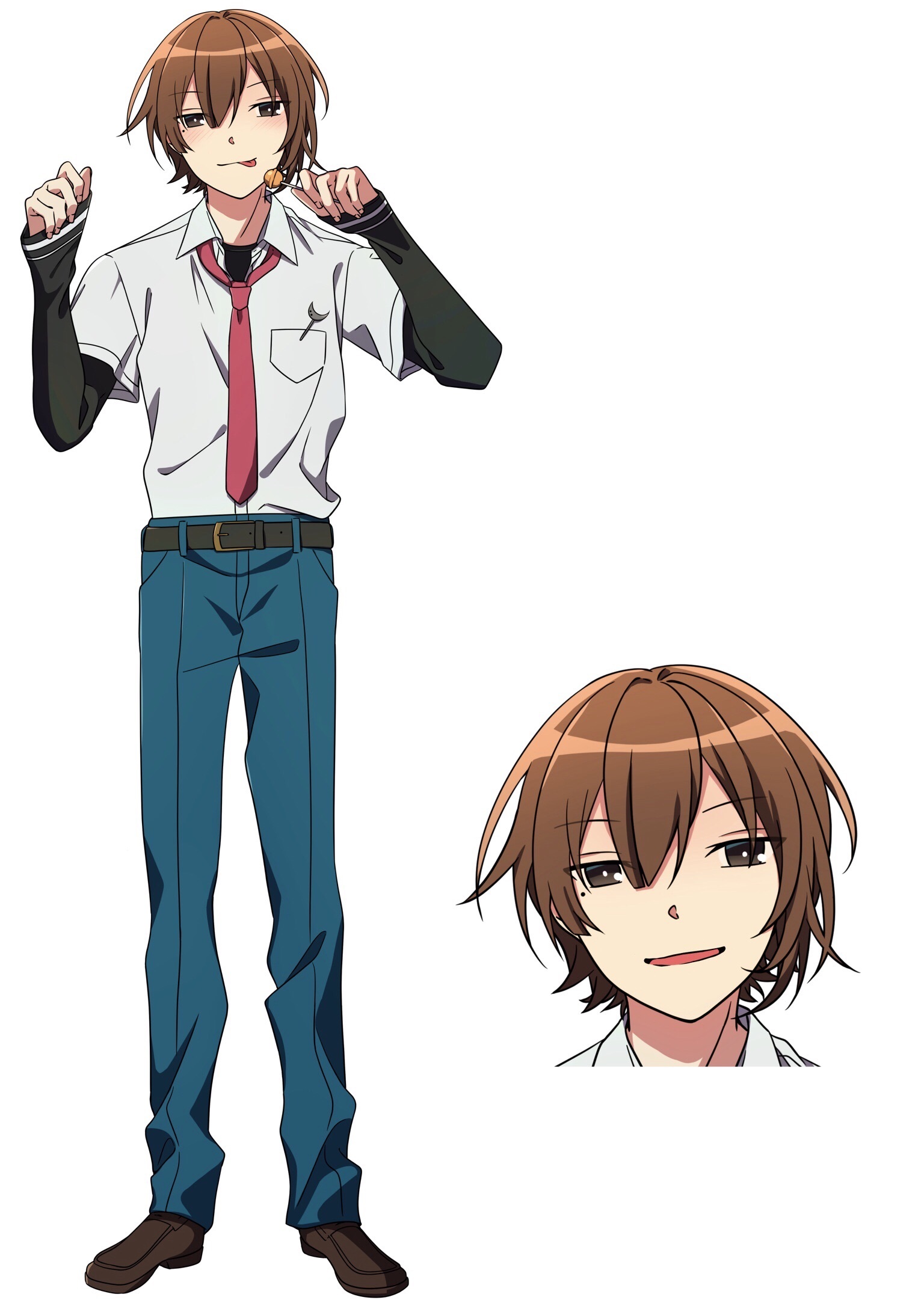 藍くんの立ち絵とプロフィールです。ビジュアルは、実は凪くんを意識して作りました。萌え袖って良いですよね。