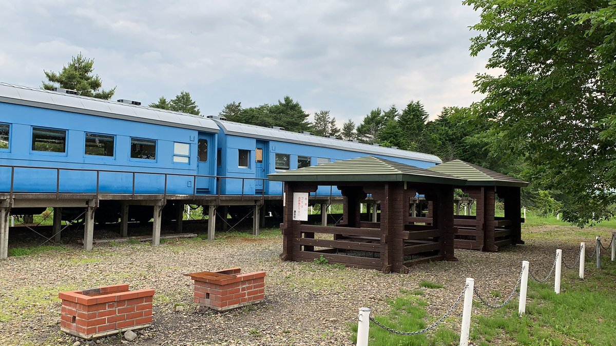 さてそこから程近いキャンプ場へ行ったのですが、フリーサイトはやらないということで急遽展示客車に泊めてもらうことに。