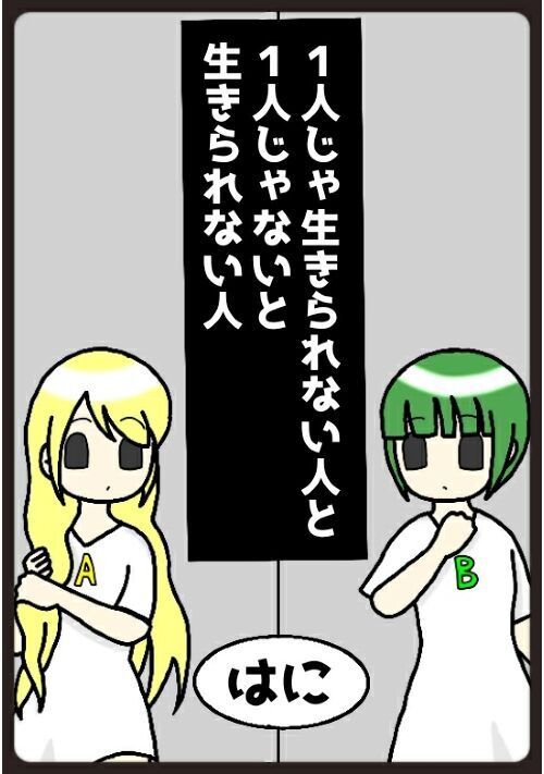 1人じゃ生きられない人と、1人じゃないと生きられない人。