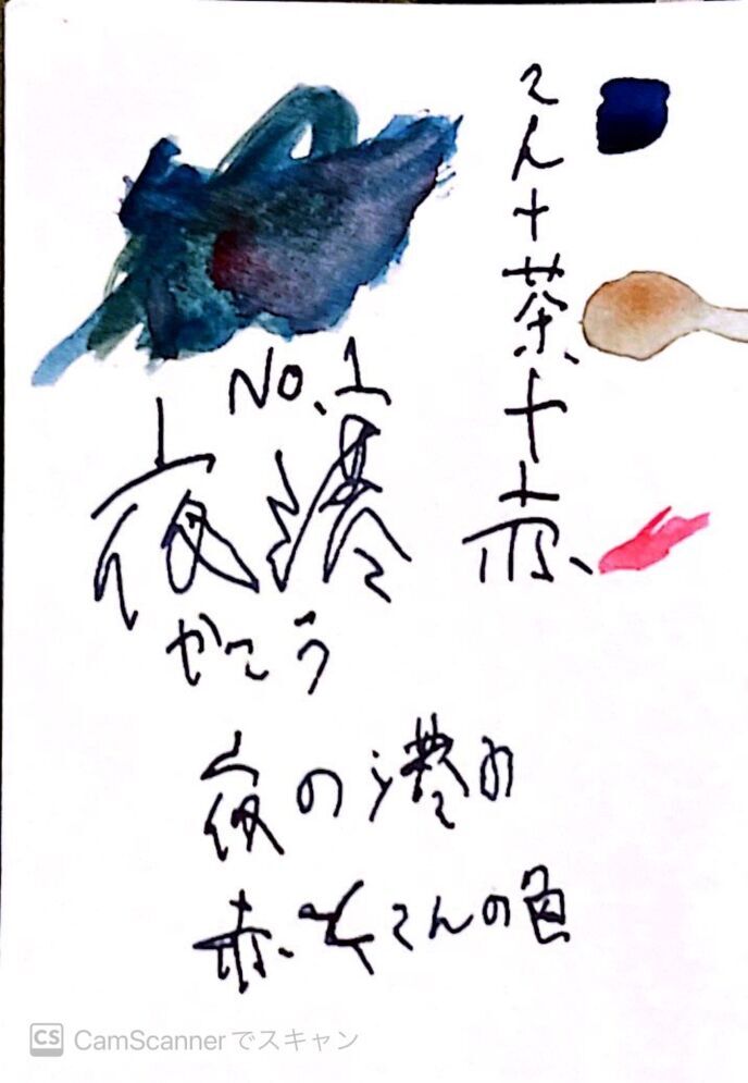 まず、紺を広げ、黒と水をたっぷり含ませた茶色を紙の上で混ぜます。