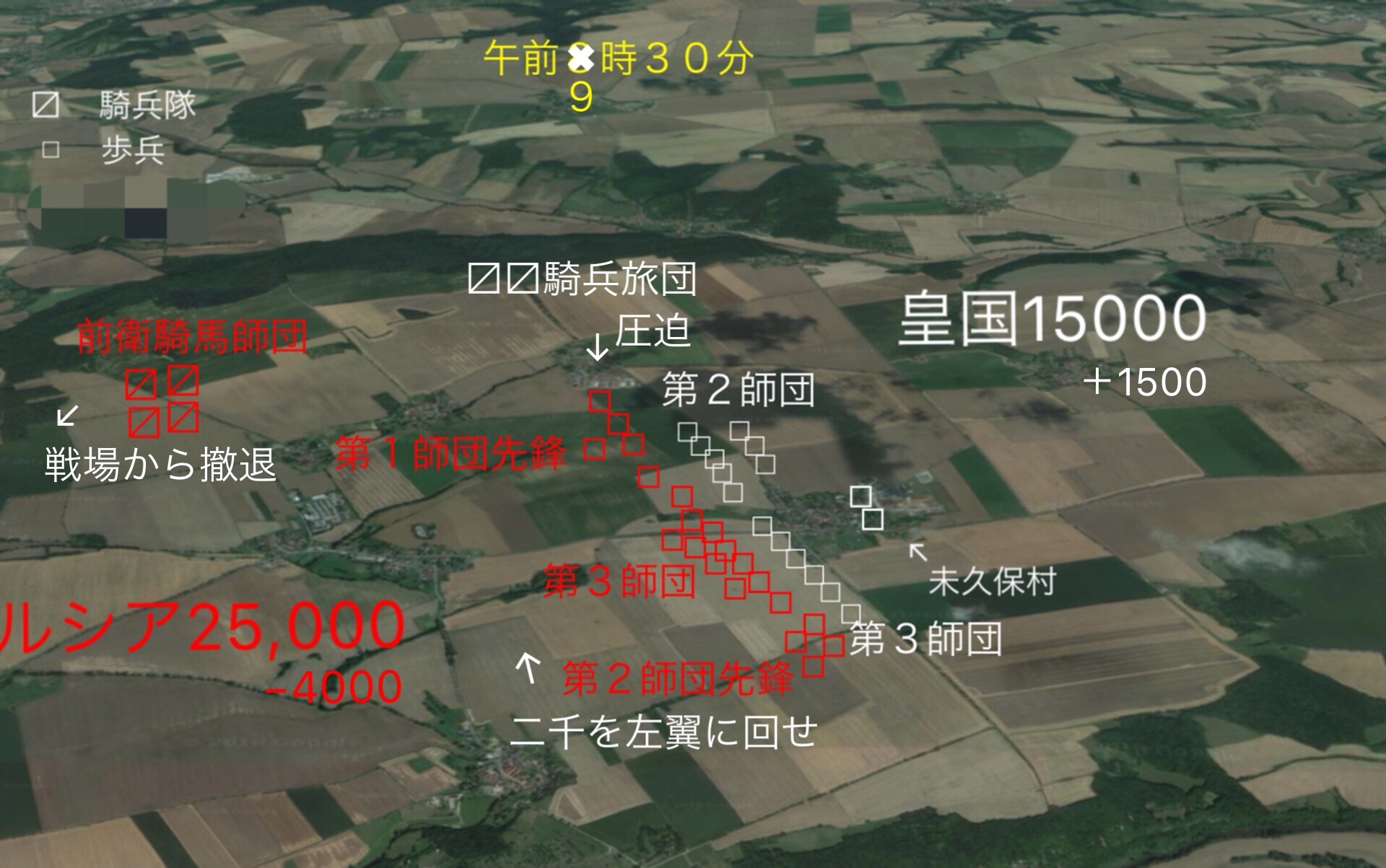 「いかん、右翼の第2師団の半分を左翼に応援に行かせろ。」