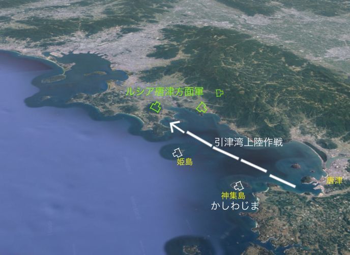 「上陸場所は引津湾。史上初の陸軍と海軍の協働作戦、【引津湾上陸作戦】。既に姫島と神集島(かしわじま)には、300ミリ砲を設置済みです。これでルシア艦の侵入を阻止します。