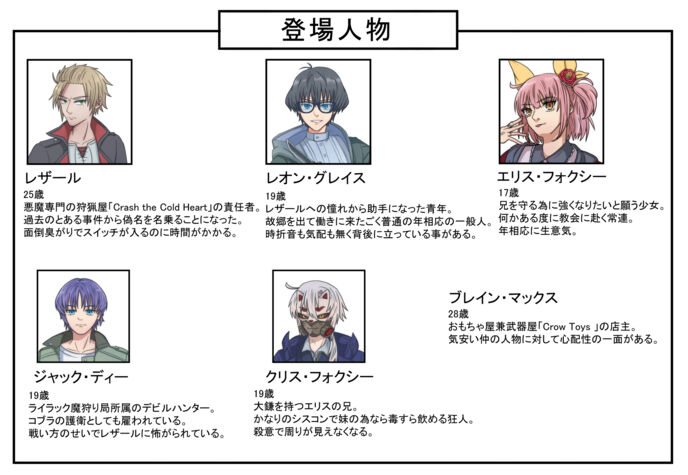 クリスは再び鎌の刃先をジャックへ向ける。仮面で表情が見えなくてもこれは威嚇しているのだと分かる。「もー短気っすねぇ」と質問に答えないクリスにため息を吐きながら両手を上げる。ジャックは空を見上げてどこか遠い目をしている。思い出したくもない過去に耽っている、そんな目だ。