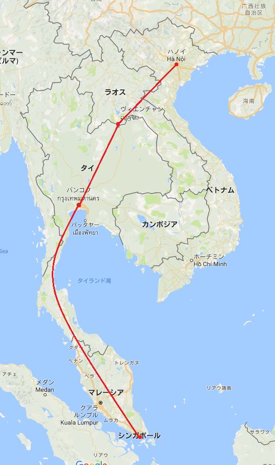 次にはシンガポール発の列車はバンコクに到着後、ビエンチャン、アンナン山脈を越え入るという計画になったということだ。