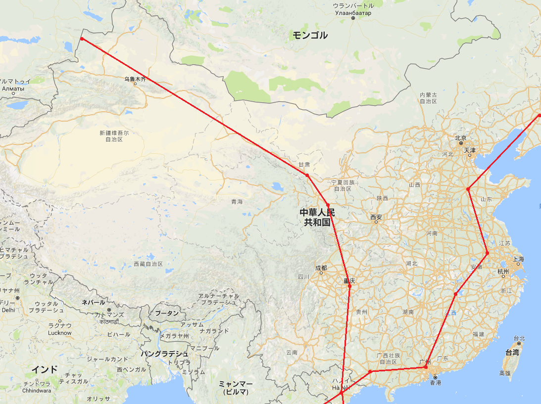 コイヤン、チョンチン、ランチョウ、ウーウェイ、ターチョンまで列車の通れそうなところを作っていく。