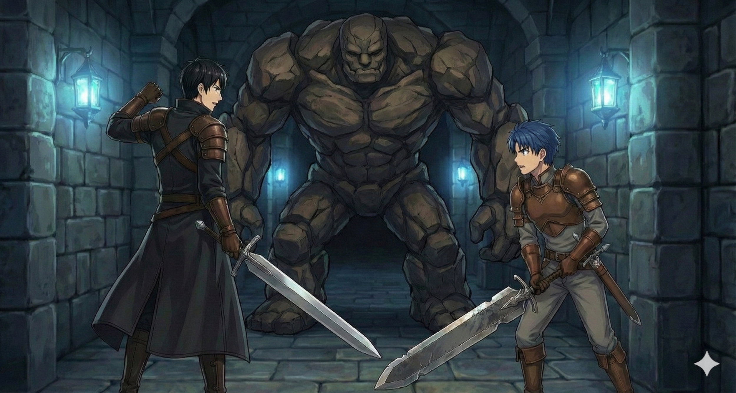 通路を進むと2体のゴーレムが大扉の前で待ち構えている。