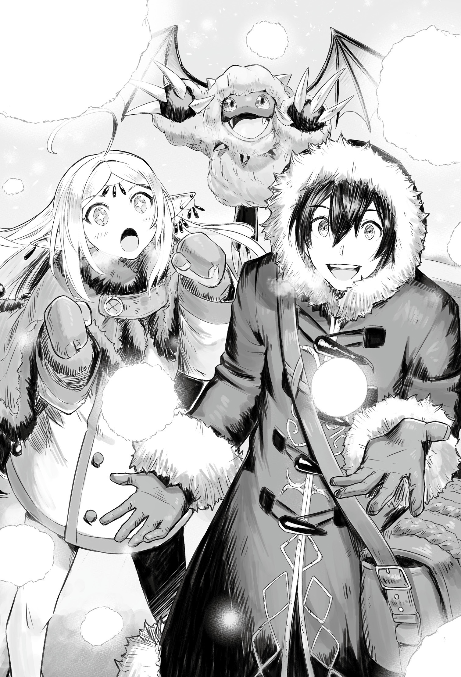 各自に加熱魔石を装備させているとはいえ、ペラッペラの装備だけだと見ているだけで凍えそうになる。クレイには動きやすい冬装備を。ブロライトとプニさんにはもこもこフードの付いたもこもこ防寒着を装備させた。