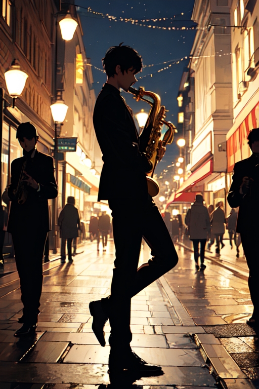 サックス特有の甘い音色が、夜の街中にムーディに響いていく。