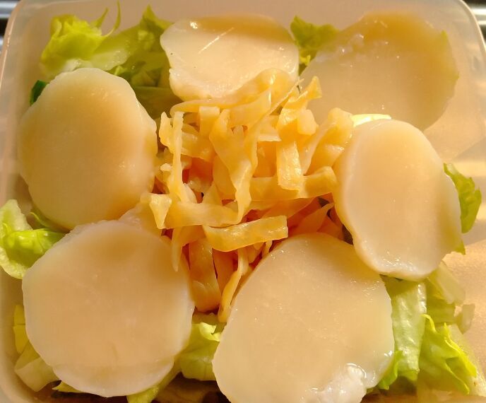 クラゲと帆立の貝柱のサラダとなります。とうとうこれが、ラストの帆立となりました。次回はなにを頼もうかと思案中です。