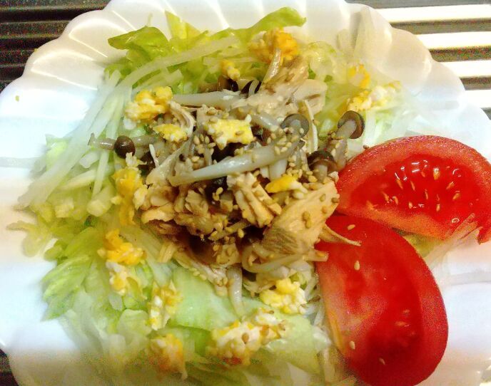 レタス、大根、トマト、シメジ、玉子少々、白ゴマなど。