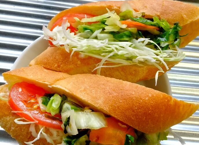 フランスパンのピクルスサンドです。お野菜たっぷり。