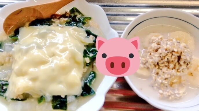 いつものオートミールリゾットとデザートです。