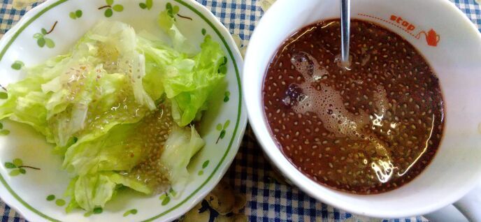 解答していた帆立の貝柱を、サラダに乗せるのを忘れていました。レタスだけのサラダって……チアシード食べるのに気を取られていて、食べきり間際まで気付かず仕舞いでした……