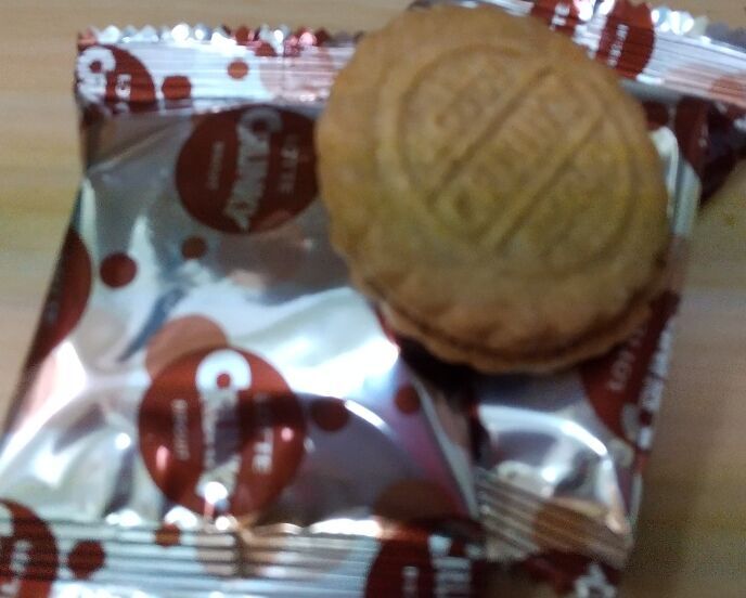 クランキーチョコビスケット2枚。約120カロリーです。ババからの差し入れです。お菓子類も小分けにして食べれば良いんですよね。