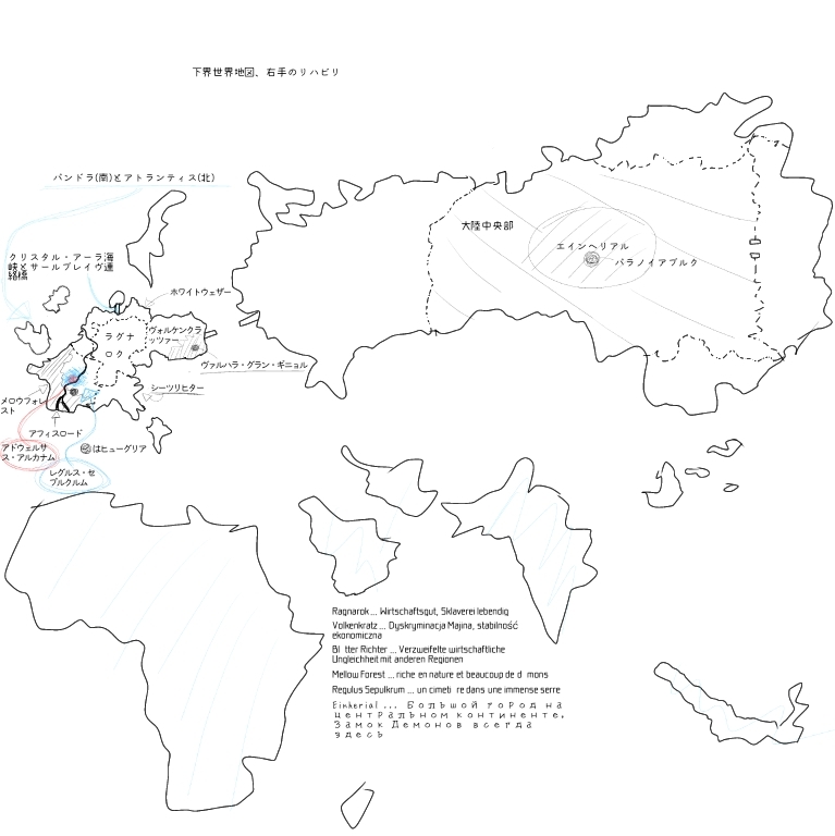 「あ、言われてみれば......ん?って感じではありますが何となく似てるような......そういえば大昔の世界大戦で、下界の大陸は結構陸地が削れたりとかで大陸の形が変わってるところがあるって聞いたことがあります、関連性があるかはわかりませんが」