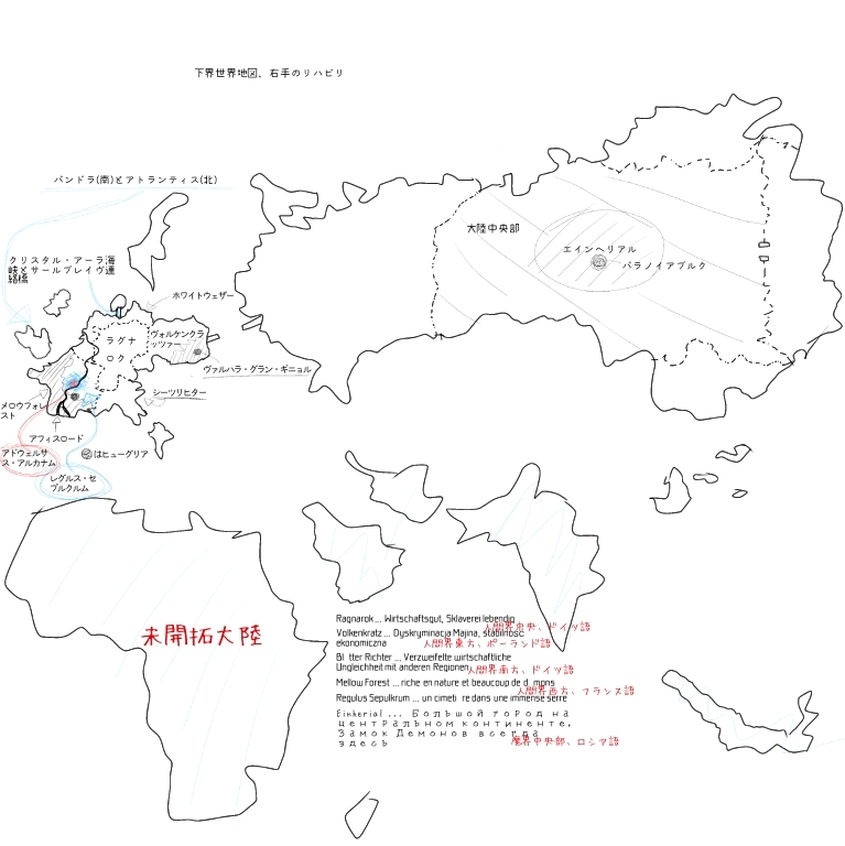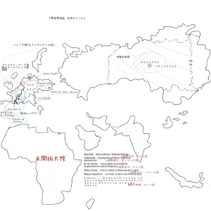 或斗によって書かれていた下界の簡易世界地図には、帝亜羅の手によって赤ペンでどの言語と一致したかが書き込まれていた。