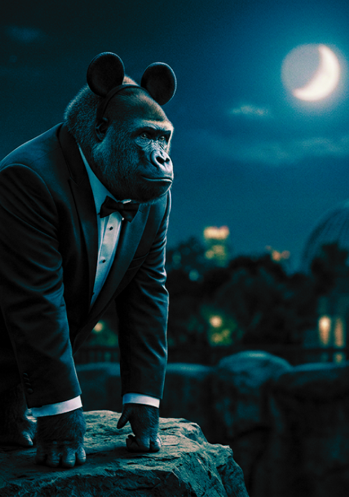 勝負タキシードに身を包み、ネズミの耳をつけた紳士。