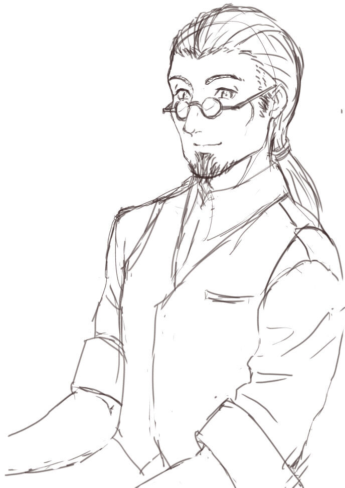 真面目だが強気で、どこか挑発的な笑みを浮かべる青年。