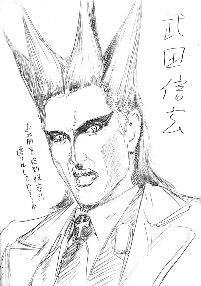 類まれなる戦の才能に恵まれながらも、山梨県出身だったため、領土拡大に苦戦、そこで甲賀忍者に接近し、彼らの秘術によって不老不死となった。