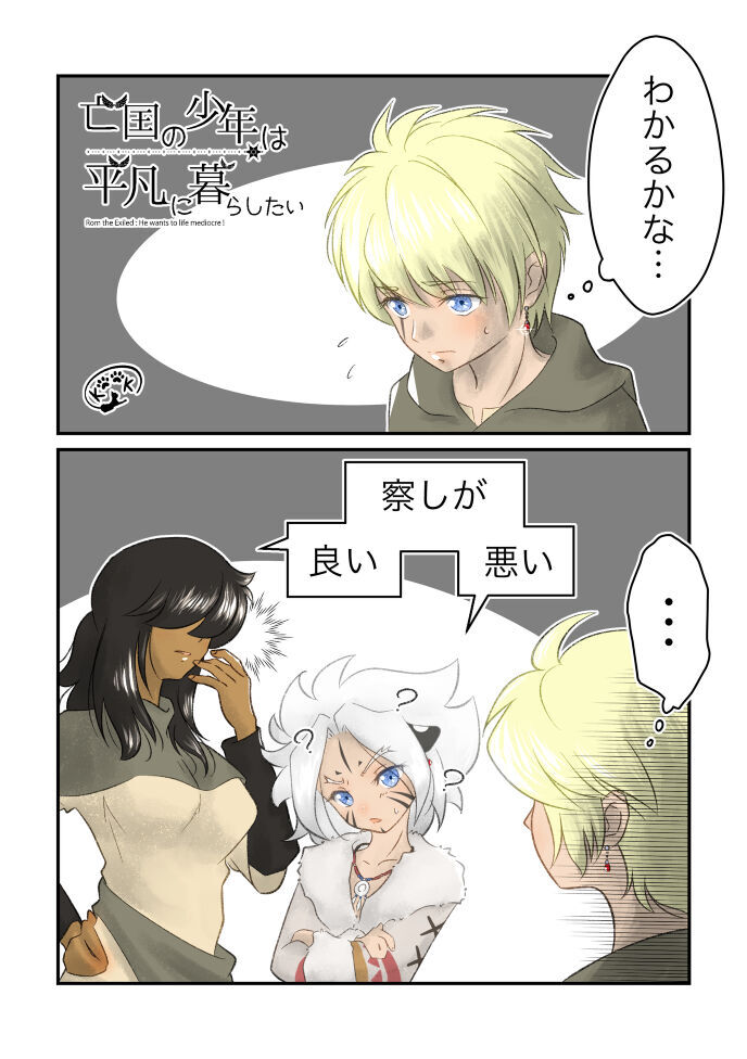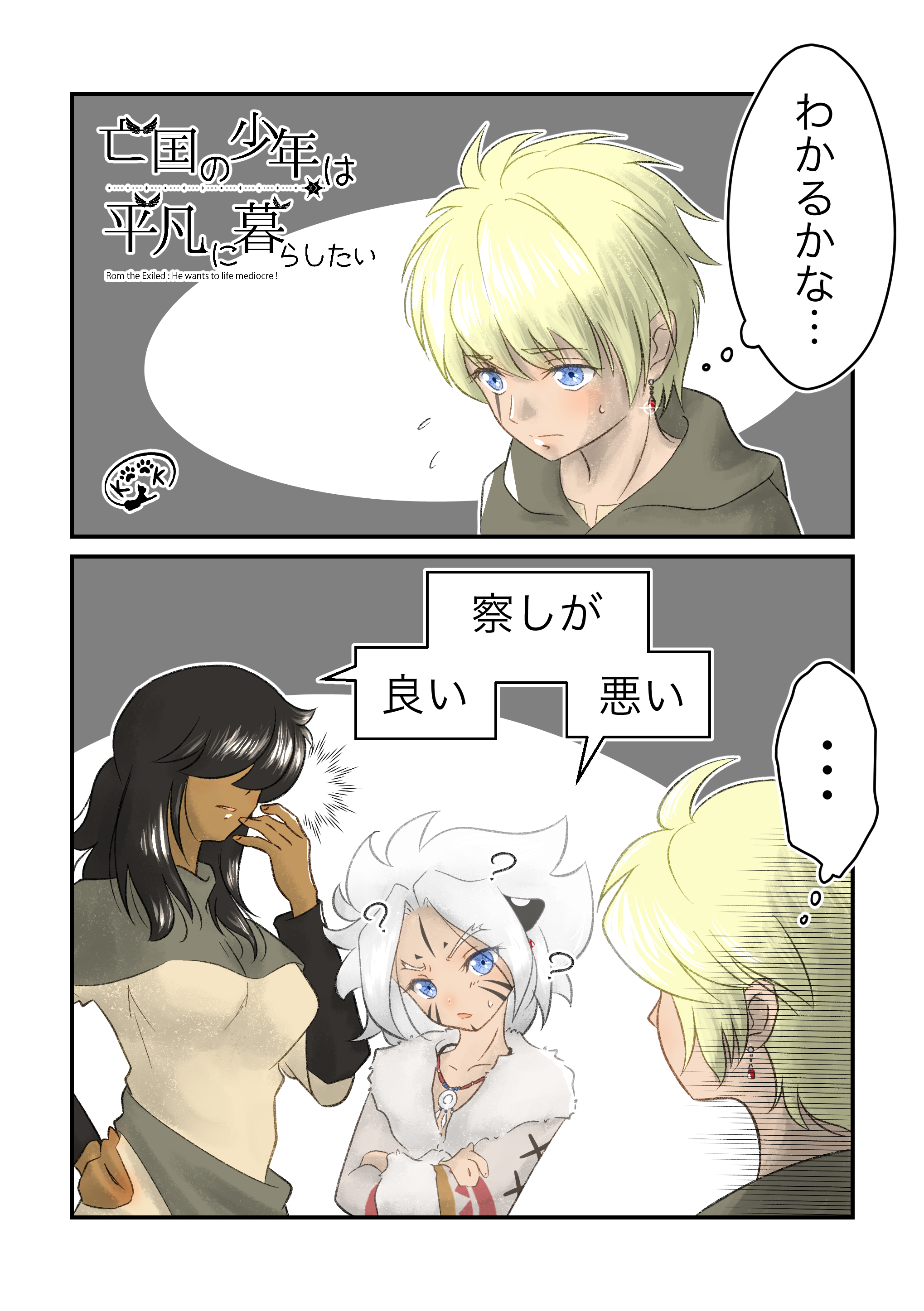 ロムは人差し指を縦にして、傷痕のある右目に重ねて見せた。それから、両耳を指差した。