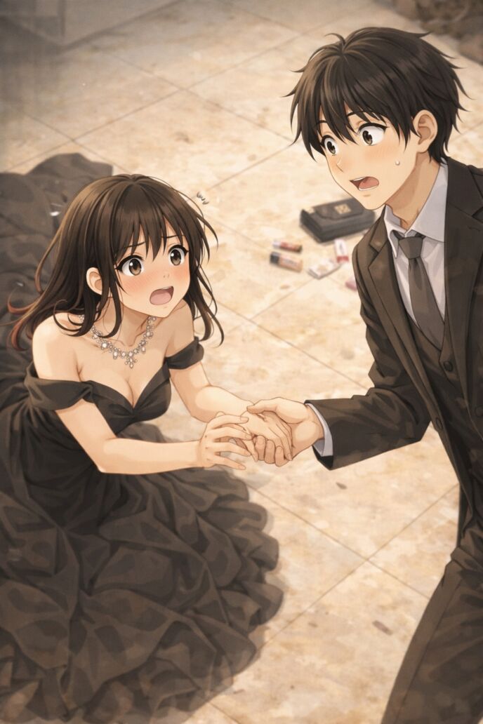 誰かが勢いよくぶつかってきて、ぶつかった相手が倒れこんだのがわかった。
