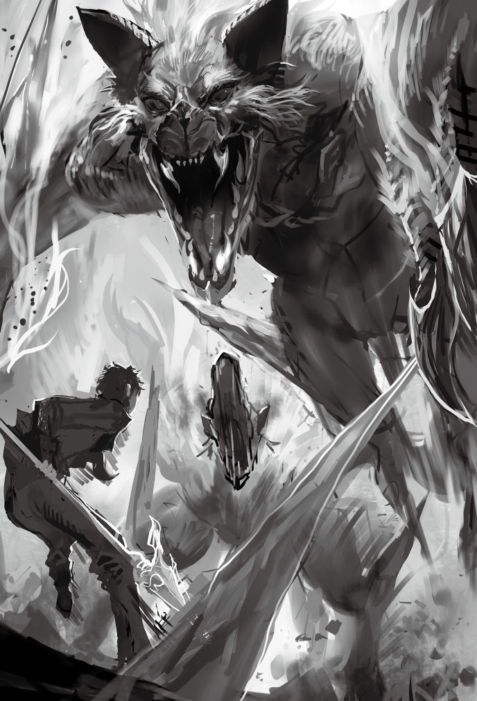 凶悪な噛み付きを身をそらしてかわしたシンは、続く爪の一撃を槍の柄で弾く。
