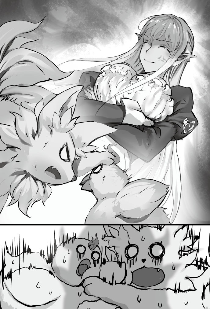 鳴きながらも夢中で料理をつついているカグツチに、シュニーが微笑む。