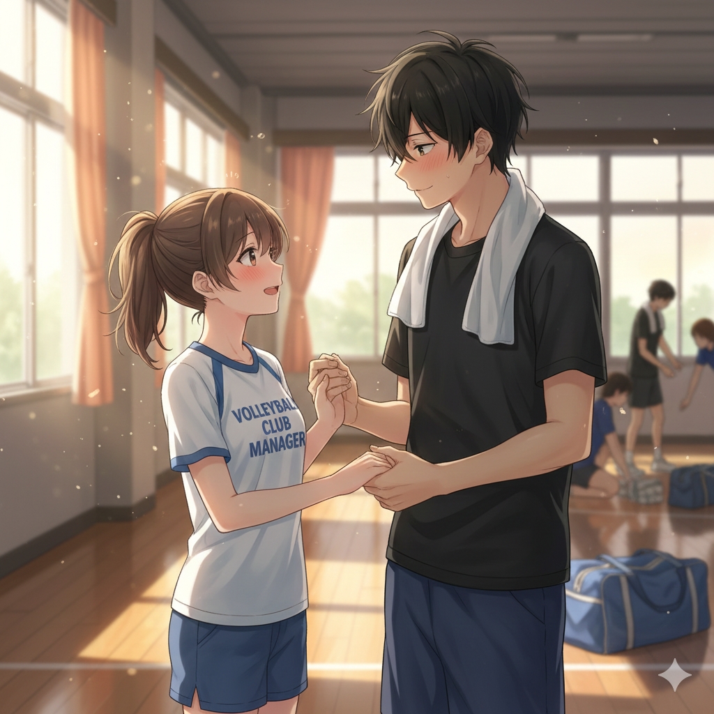 顔が赤くなるのを感じて、結衣は慌てて俯く。周りには部員たちが大勢いる。付き合いたての、しかも「秘密」の二人の距離感は、あまりにも心臓に悪かった。
