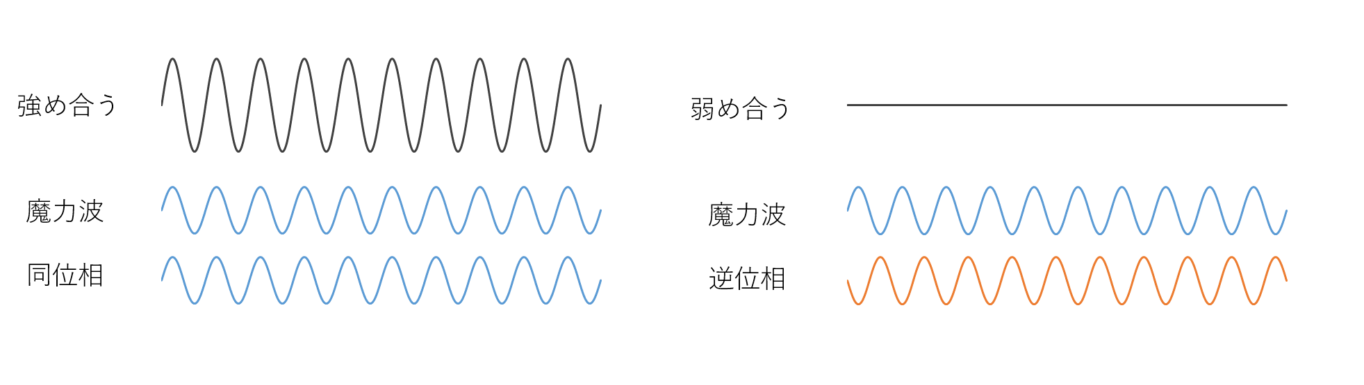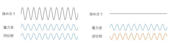 この魔力波に対し、同位相の魔力波をぶつけると攻撃性が強くなり、逆位相の魔力波をぶつけると攻撃性が弱くなることが知られている。