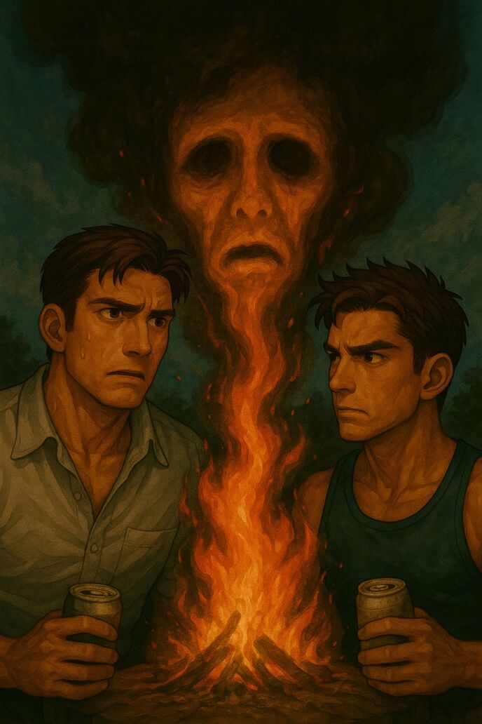 赤い炎には、黒々とした煙が混じっていた。その煙は夜気に溶けることなく、渦を巻くように炎と絡み合い、やがて、、、不気味な形を形作っていく。
