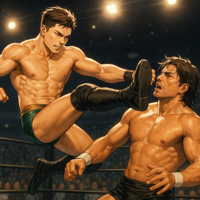 汗と皮膚が擦れ、リングマットに肉が打ちつけられる音が鳴る。