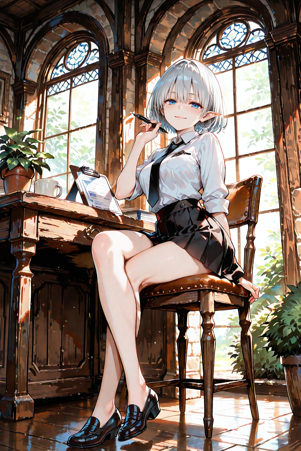 わたしの見た目? うーん、そうですねぇ、自分でも言うのもなんですが、このシルバーブロンドの髪と、エルフらしいすらりとした手足は、それなりに……うん、気に入ってはいるんですよ?