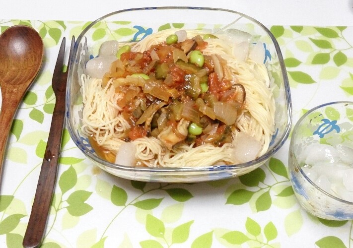 「和風ガスパチョの冷製パスタ...になるのかな?」