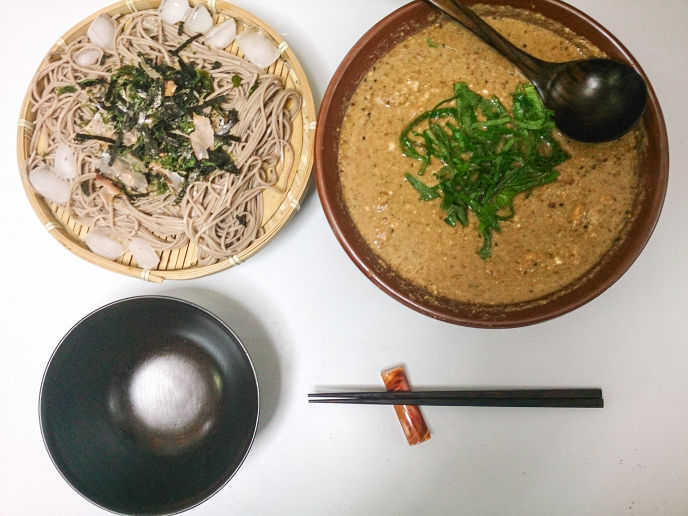 そのまま飲んだり、飯にかけてかっ込んだりと色々楽しめるが、昔戸隠で胡桃ダレの蕎麦を食べたのを思い出し、まずはつけ蕎麦にしてみた。