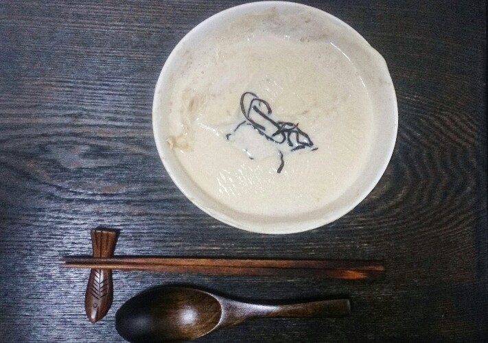 (もっかいあっためたら、また出来ネーかな、湯葉...)