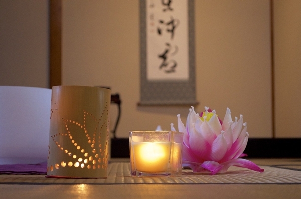 部屋には1枚の掛け軸が垂れ下がっている。落款まで押してある…