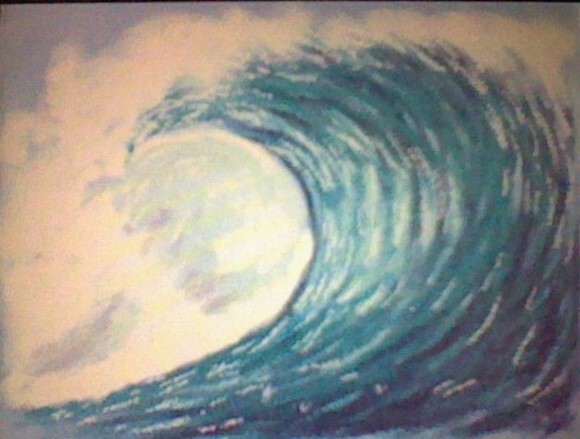 6:波しぶきのはっきりした部分とぼかす部分の境界線に気をつけ、奥行きを出す