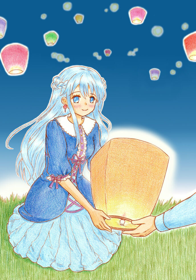 青色だった世界に夜が訪れると、水の精霊に豊穣の願いと感謝がこめられた無数のランターンに灯がともされる。