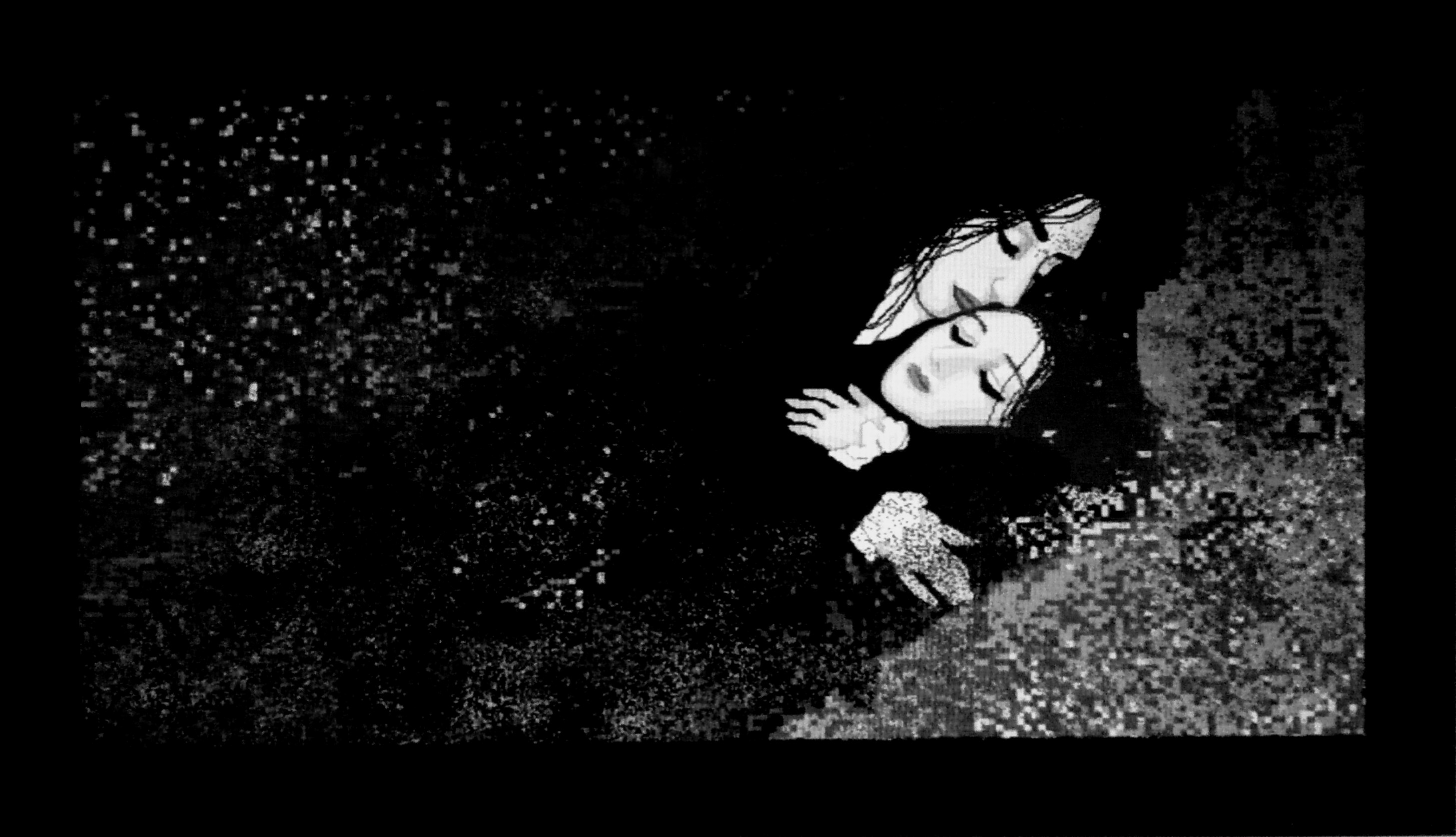枯れ葉の絨毯に横たわる二人の上に風花のように舞い始めた雪は、黒いミンクに白く優しく、やがて全てを覆い隠すように降り積もっていく。