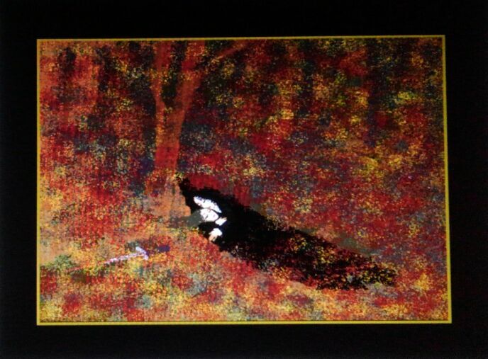 大木の影からバルバーが姿を現す。黒いミンクのマントは、十万色の秋の饗宴を描く画家の創意か、顕かになった不治の痼としてアナンダの前に存在する。
