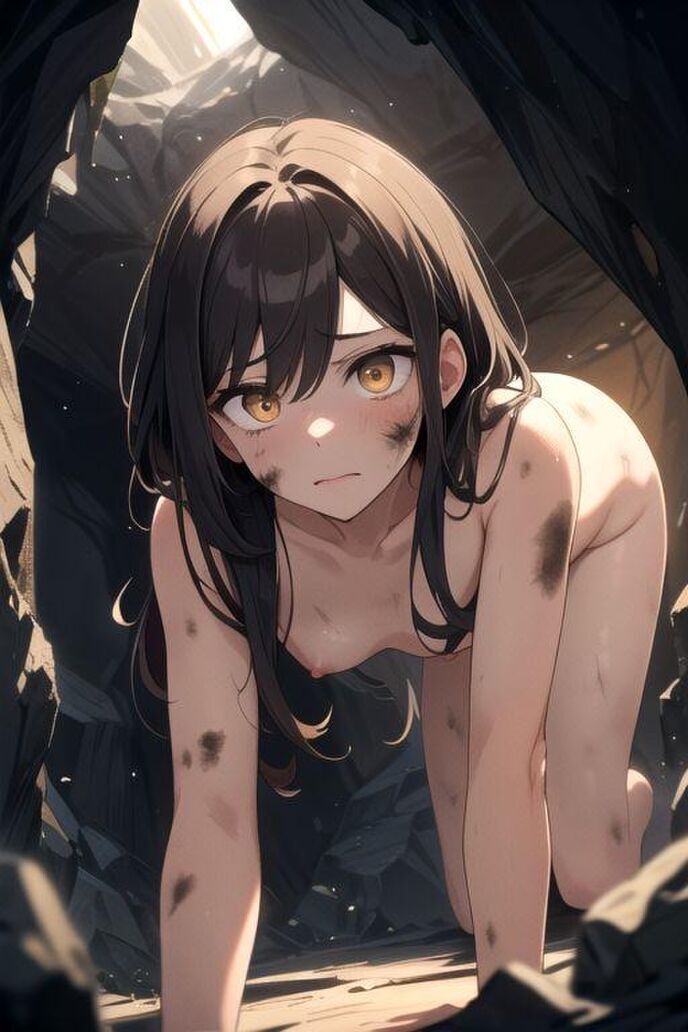 洞窟の中は暗く、湿っぽい空気が漂っていた。クロエは巣穴の片隅で縮こまりながら、日々の屈辱に耐えていた。彼女の体は痩せ細り、精神的にも疲弊していた。オークは彼女をまるで犬のように扱い、時折足で蹴りつけたり、粗末な食事を投げ与えることしかせず、彼女を完全に支配下に置いていた。