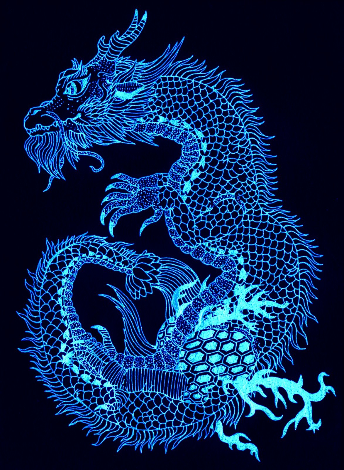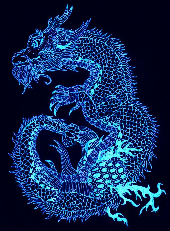 古代中国の神話上で「四神」と呼ばれる、世界の四方向を守る聖獣のうち、東方を司る龍。中国だけでなく、日本や朝鮮でも、これに基づいた考え方があり、高松塚古墳やキトラ古墳の壁画、建築物や都市の配置などに、その名残が見られる。また、季節では春、五行では木に、土地では川に、それぞれ対応している。そのため春に出現し、春分に天へ昇り、秋になると淵へ入るといわれる。ちなみに、年の若い時代を指す「青春」はここからきている。また、姿は青い体色(緑から蒼)の龍とされ、草木の緑や、明け方の清らかな大気を象徴し、春の生命の息吹を意味する。ただし、古代の壺などに描かれる場合は、頭部のみ白や黄色の表現をされていることがある。また、日本の説話集『今昔物語集』には、聖徳太子が瞑想していたとき、青龍が太子の魂を乗せて中国に渡り、仏教の経典を受け取ったという話がある。のちに小野妹子が唐へ渡ると、現地の僧が「聖徳太子が青龍に乗ってやってきた」と言ったそうだ。また、古代中国には、幾度か青龍という年号が存在した。国の安定と繁栄を願い、この聖獣の名がつけられたと考えられる。また日本においては、平安京の東側に鴨川があり、都で暮らす人々を守護する役割を担っていた。