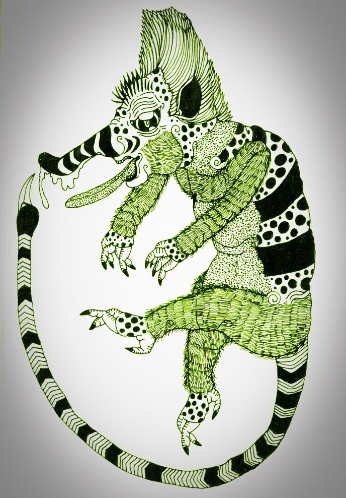 日本軍の捕虜収容所から脱走したスウェーデン人のエイナール・ペテルスン=シェムトクヴィストが発見したハイアイアイ群島に生息する鼻行類の一種、という設定でゲロルフ・シュタイナーが著した、生物学における三大奇書のひとつに数えられる『鼻行類』に記された架空の生物。ツツハナアルキ科ハナススリハナアルキ属。日高敏隆・羽田節子訳の平凡社ライブラリー版によると、小形のハツカネズミ大の動物であるとのこと。この種族は、ハイダダイフィ島の流れの緩やかな小川の岸辺に生息するとされ、水の上に張り出した植物の茎にしがみつくようにとまっている。餌の捕まえ方が変わっており、長く伸びた鼻から細く長い糸を、鼻水のように水中へ垂らす。粘着力のあるこの糸に、小形の水生動物がくっついたところを、獲物(主として甲殻類や幼虫であるが、稀に小さな魚も含まれる)をある程度釣り上げてから、その極端に長い舌で鼻先から嘗めとる。これらの挙動緩慢で鈍感な小動物は、防衛手段としてよく動く長い尾を備えている。尾の先端には毒腺があり、その毒液は、毛が変形して生じた中空の爪に流れ込むようになっている。たいていは小群をなして暮らしているので、全員が一斉に尾を振り回して身を守ることができるという。