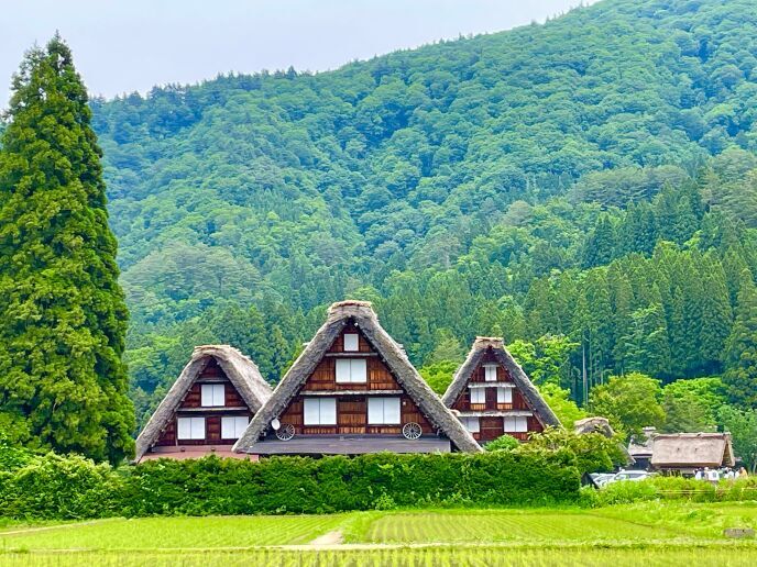「梅雨の晴れ間にお天気回復。土曜日は白川郷の合掌作りに行ってくるね。だから待ち合わせは北陸のAホテルでいいかな?」